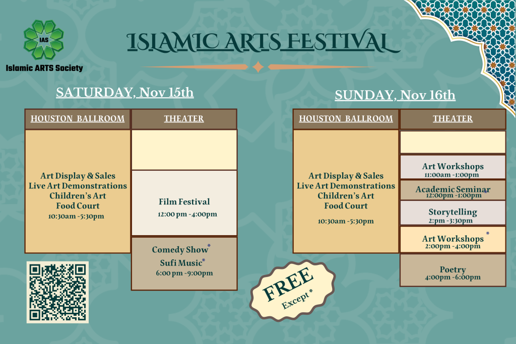 The Islamic Arts Festival is organized by the Islamic Arts Society. The Islamic Arts Society aims to share the rich heritage of Islamic Arts. The society organizes events to celebrate our culture and promote the positive image of our community among Muslims and non-Muslims. Art is a common language and binds diverse communities. By promoting Islamic arts, we hope to promote mutual understanding and to bring the broader American community together.